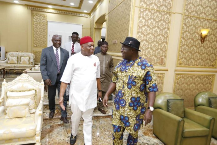Chief Whip of the Senate and two-term Governor of Abia State, Senator Orji Uzor Kalu is currently in a closed-door meeting with the Governor of Abia State, Dr. Okezie Ikpeazu