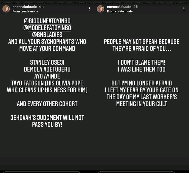 Alleging that people who want to speak up about the “evil” going on in the church either fall ill or die mysteriously, Nnenna further asked if Pastor Biodun Fatoyinbo has joined an occultic group.