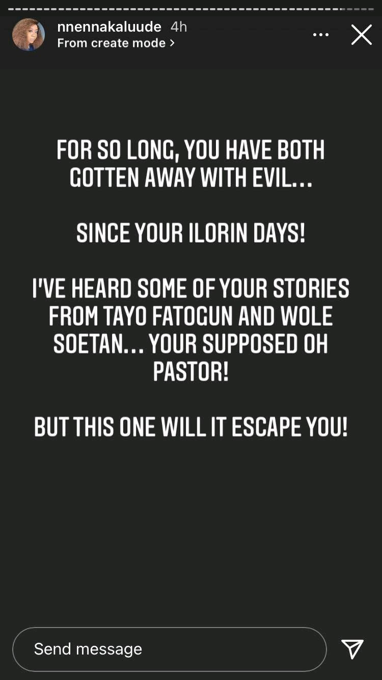 Alleging that people who want to speak up about the “evil” going on in the church either fall ill or die mysteriously, Nnenna further asked if Pastor Biodun Fatoyinbo has joined an occultic group.