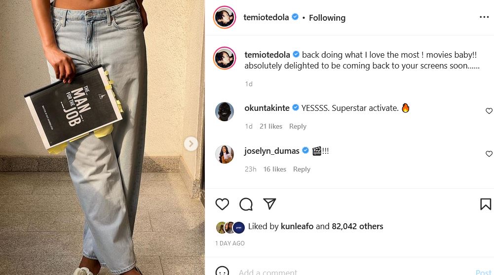 Billionaire heiress and actress, Temi Odetola has gotten her second movie role in filmmaker Niyi Akinmolayan’s next movie, The Man For the Job.