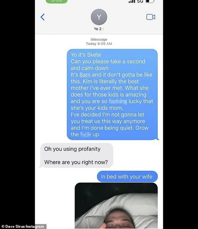 Kanye during the exchange, asked Pete where he was texting from, and he replied, “In bed with your wife”