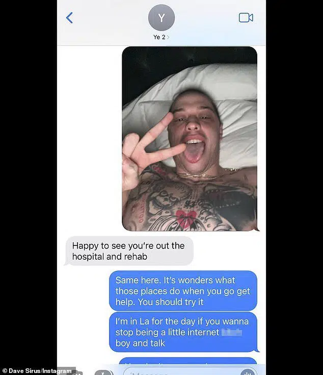 Kanye had no idea Pete was watching his Instagram activity and he asked him to calm down in a text.