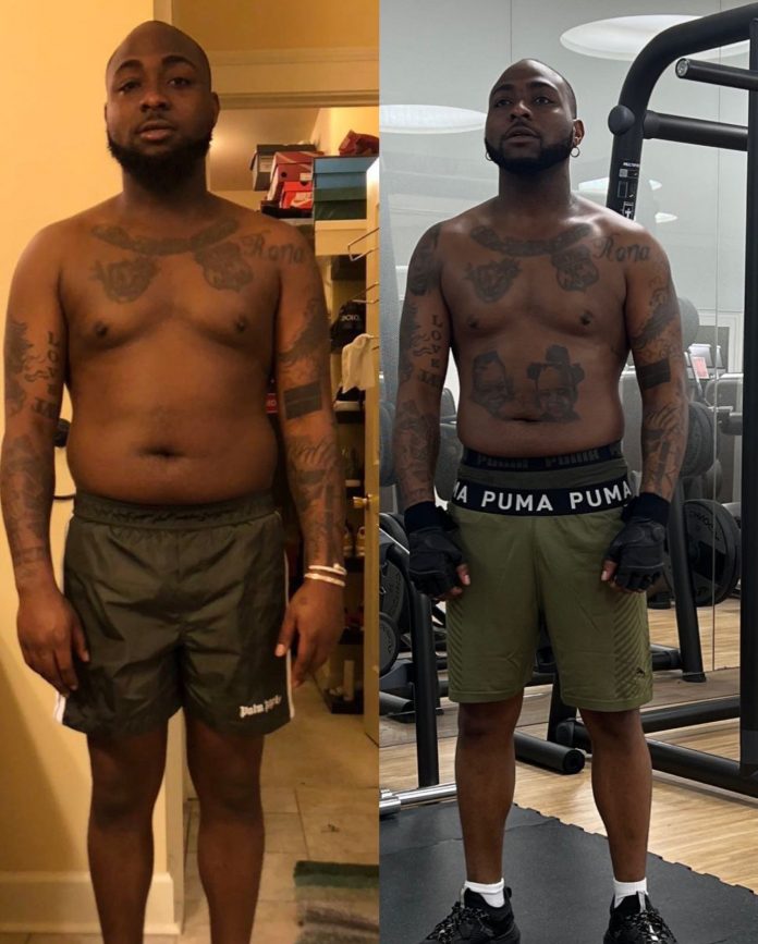 Davido who has been visiting the gym in the past few weeks shows his improvement. He is sure making progress in his weight loss journey.