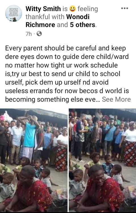 “Every parent should be careful and keep dere eyes down to guide dere child/ward no matter how tight ur work schedule is, try ur best to send ur child to school urself, pick dem up urself nd avoid useless errands for now becos d world is becoming something else everyday, ” the witness said.