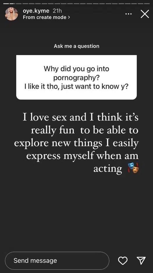 Oye took to her Insta Story to share some truths about herself. She stated that she is now into such movies which are on prominent porn sites.