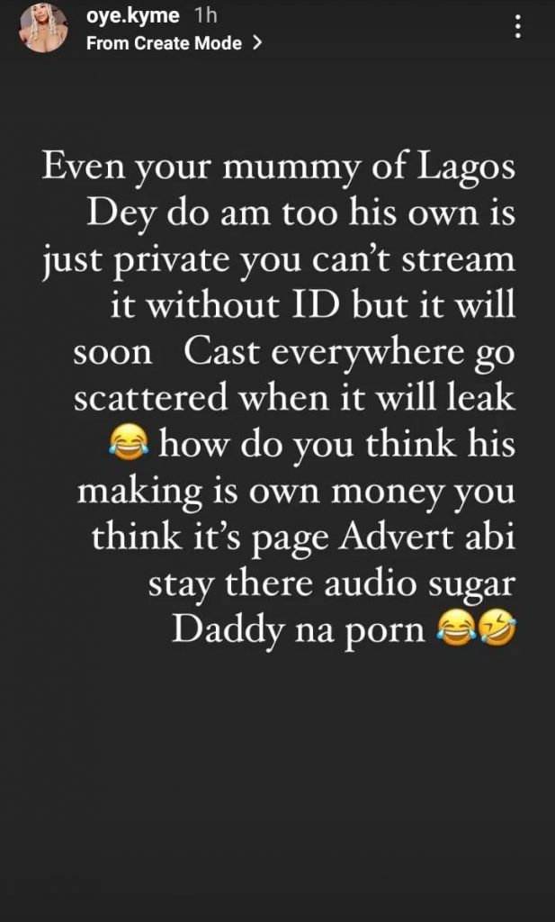She explained further that her former employer Bobrisky also shares some adult content on private platforms and said that porn is actually his audio sugar daddy and very soon all will be revealed.