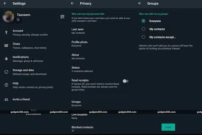 - The ‘Everyone’ option lets any user with your phone number add you in a group without your permission.