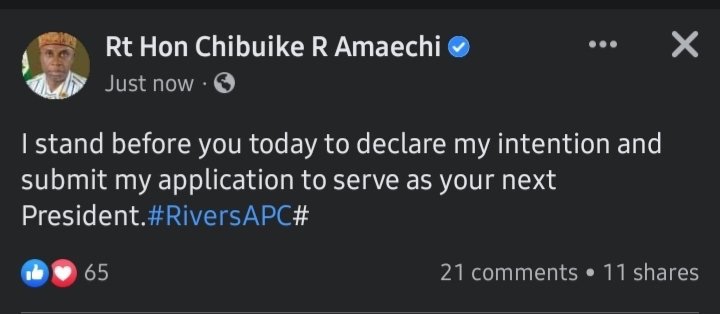 Nigeria’s Minister for Transportation, Rotimi Amaechi has declared to run for president in 2023.