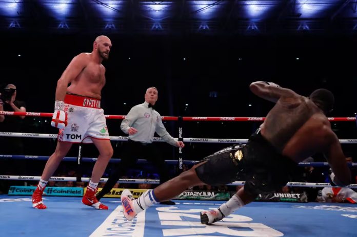 Dillian Whyte has claimed he should have been given “extra time to recover”, after he was “pushed” by Tyson Fury, just seconds before his world title stoppage defeat at Wembley.