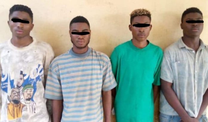 Four young men have been arrested by the Ekiti State Police Command for raping and cyber stalking a 28-year-old woman, who happened to be the girlfriend of one of them.
