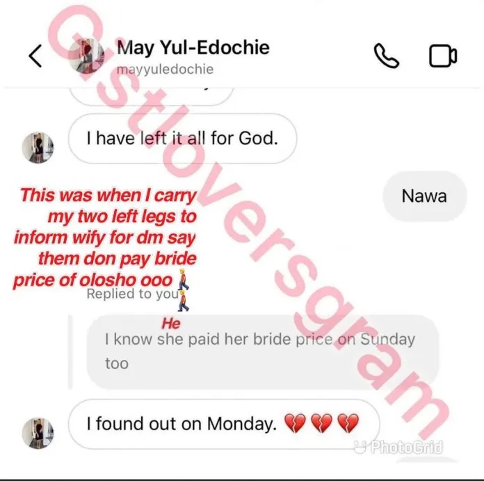 May Edochie who has four children with Yul Edochie revealed that her husband paid Judy Austin’s bride price on Sunday, April 24, but she only discovered that the following day which is Monday.