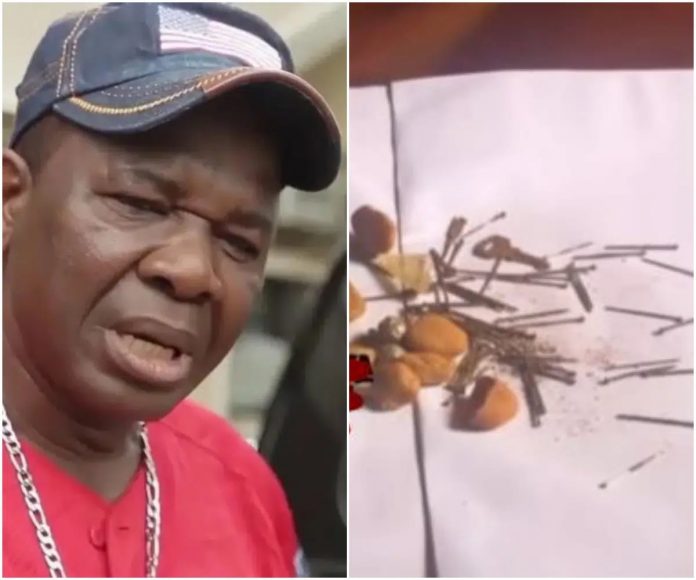 The 55-year-old actor took to his social media page on Friday to show off the things that were allegedly removed from his body after he survived a spiritual attack.