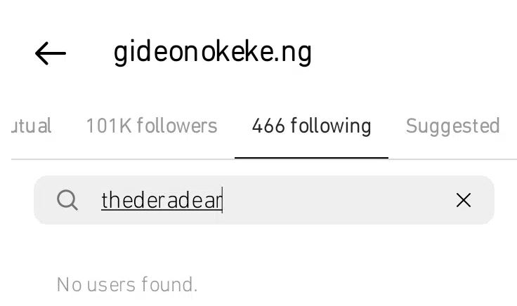 A look at Chidera’s page also shows she has removed Gideon’s surname.