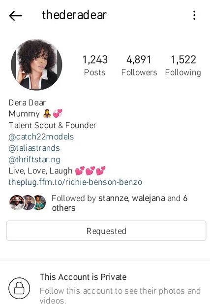 Chidera has taken down her husband’s surname from her Instagram bio.