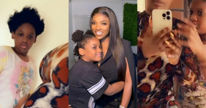 A series of videos shared on her Instagram story shows Annie Idibia lost for words when her 8 years old daughter, questioned if she was pregnant due to her protruding belly.