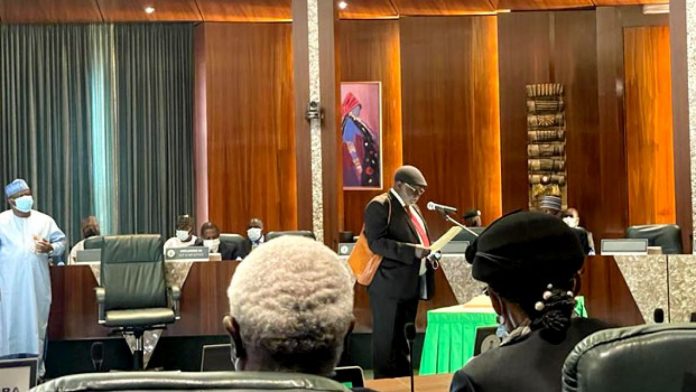 He was sworn-in today by President Muhammadu Buhari at the Council Chambers in Abuja.