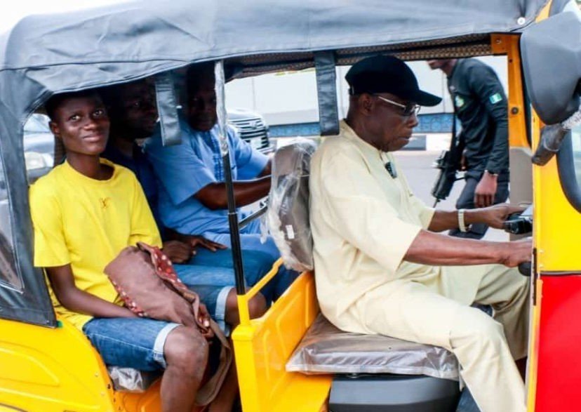 The senior statesman, who gave passengers rides, passed by places like Kuto Market, NNPC Mega Station, and Moshood Abiola, among others.