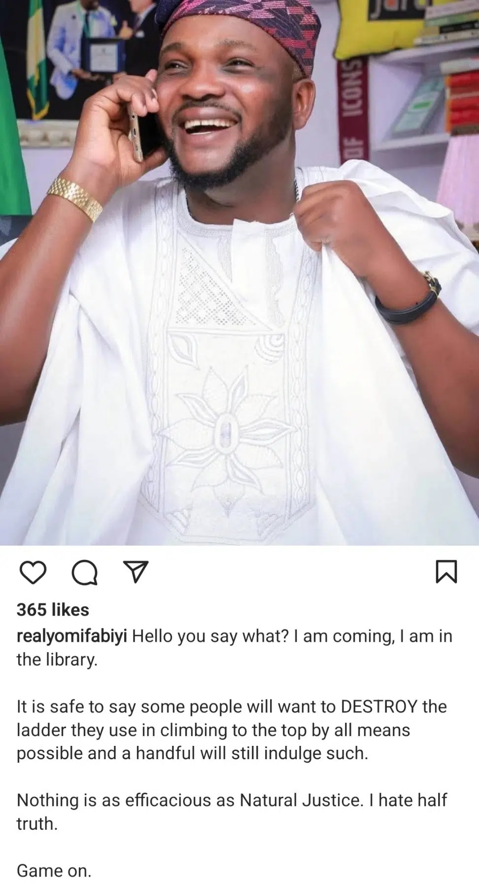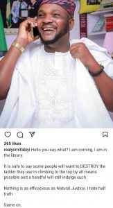 Following her allegation, Fabiyi took to Instagram to speak about people destroying the ladder they used in climbing to the top.