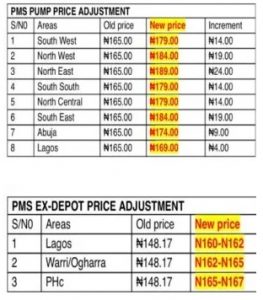 The Nigerian National Petroleum(NNPC) Limited has approved an upward review in the pump price of Premium Motor Spirit(PMS) from N165 per litre to N179 per litre, effective today (Tuesday)