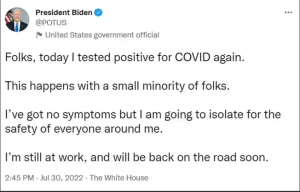 The White House said Biden was infected by the BA.5 variant, which is responsible for a fresh surge in cases around the world.