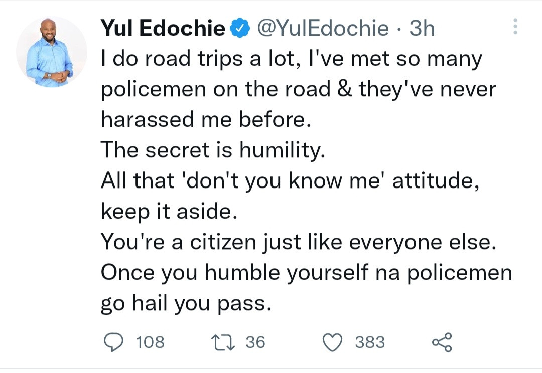 Yul Edochie has told Nigerians what to do to avoid being ”harassed” by policemen on the road.