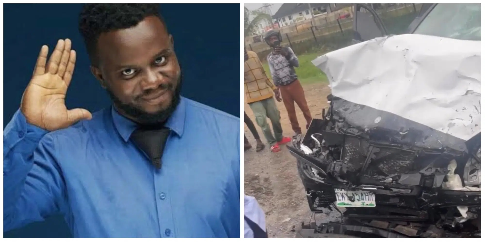 Comedian, Chukwuemeka Emmanuel Ejekwu popularly known as Oga Sabinus, has been involved in a road crash.