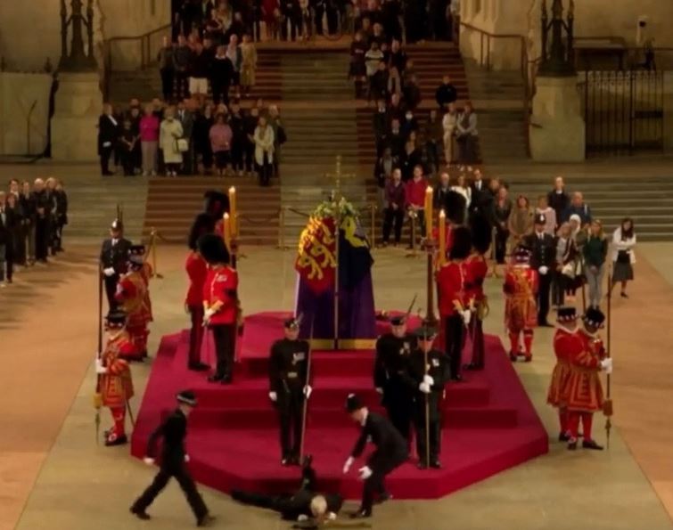 As Queen Elizabeth II was lying in state at Westminster Hall on Wednesday, a guard standing watch beside her coffin fainted.