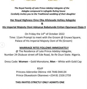 The Ooni of Ife will be marrying Tobi Phillips and Ashley Afolashade Adegoke before his 48th birthday this month.