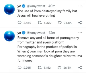 Taking to Twitter on Friday morning, December 2, West asked the social media platform to take down all pornography content.