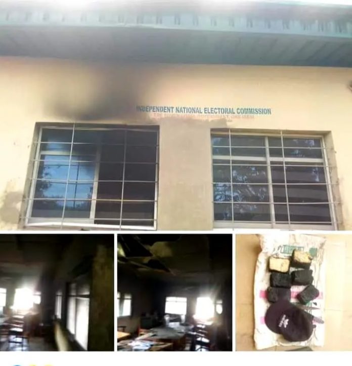 The Independent National Electoral Commission office in Orlu Local Government Area of Imo State was on Thursday vandalised and partially set ablaze by some unidentified persons.