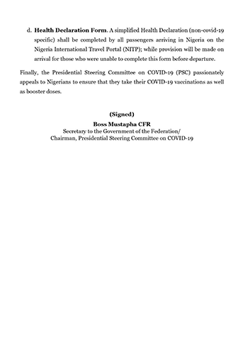 Finally, the Presidential Steering Committee on COVID-19 (PSC) passionately appeals to Nigerians to ensure that they take their COVID-19 vaccinations as well as booster doses.”