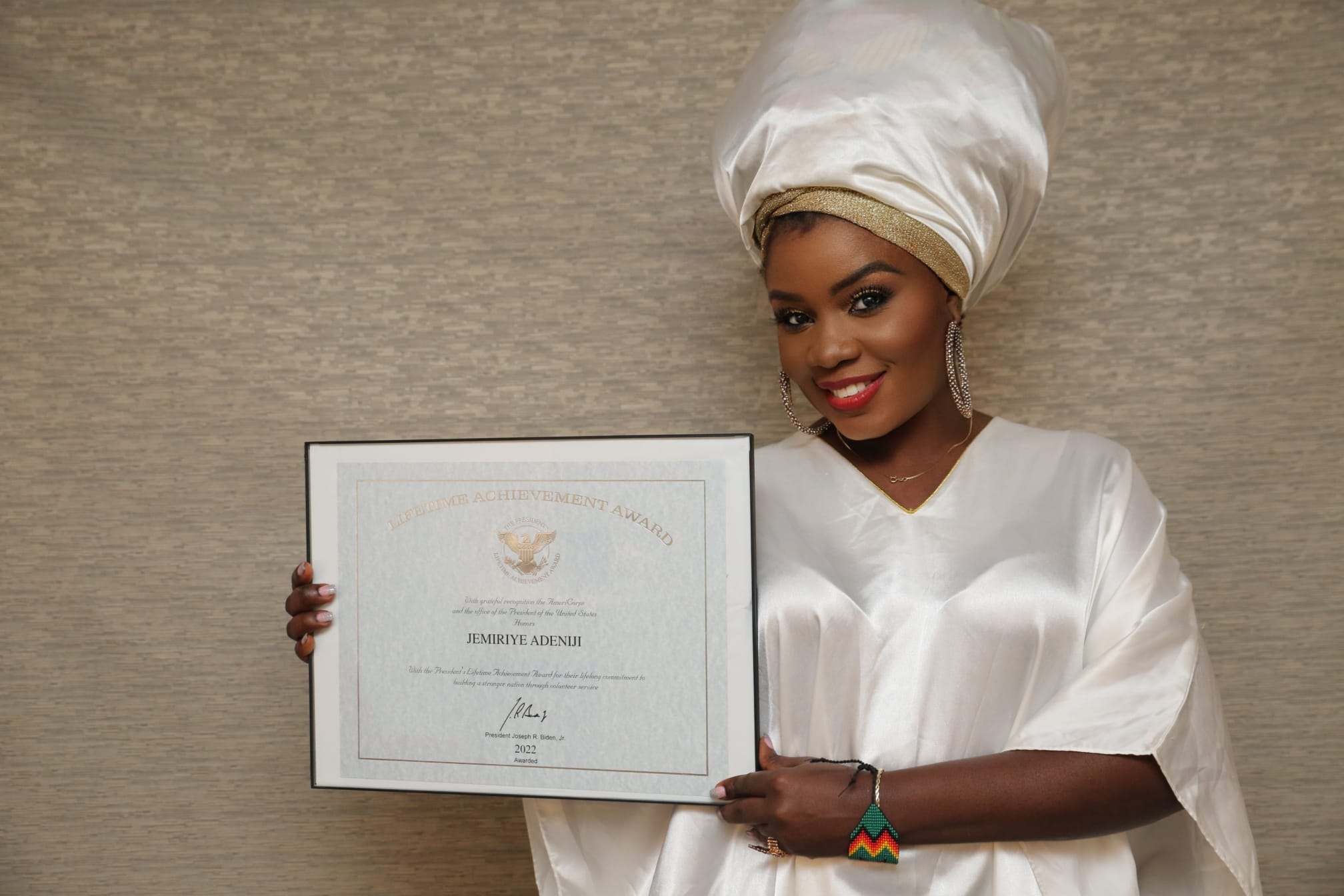 Talented Nigerian musician and vocal powerhouse, Jemiriye Adeniji, has been bestowed with the prestigious President’s Lifetime Achievement award by the United States of America.