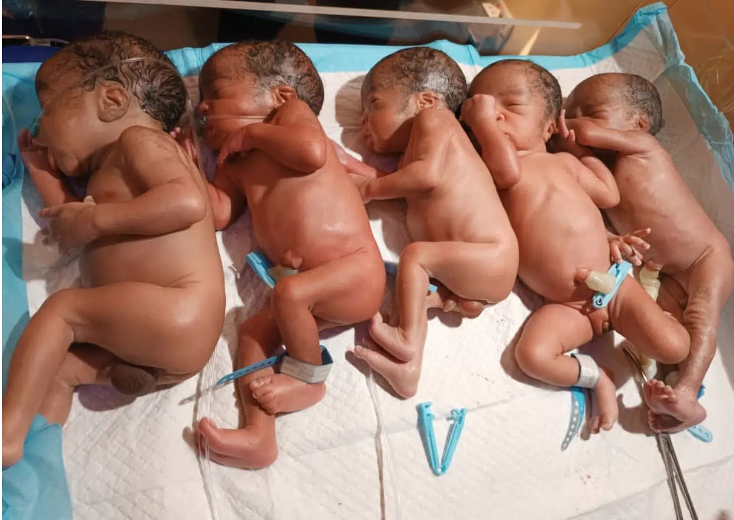 28-year-old woman, Chidinma Amaechi, on Thursday, March 28, 2023, gave birth to quintuplets, after nine years of childless marriage.