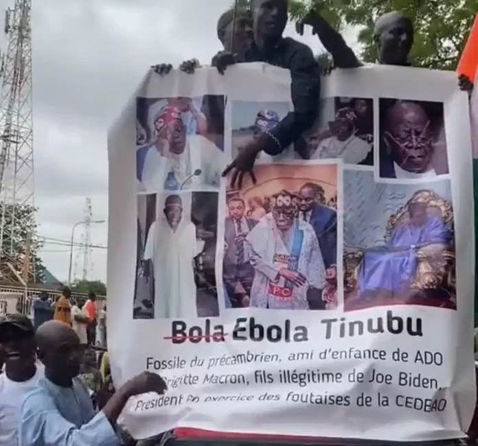A controversial video showing protesters in the Niger Republic wielding a banner displaying an altered image of President Bola Tinubu has been circulating on the internet.