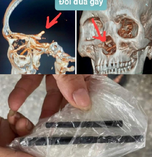 A man in Vietnam who had experienced severe headaches for five months was shocked to find out that he had a pair of chopsticks lodged in his skull.