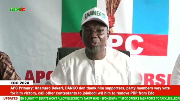 In a dramatic turn of events surrounding the disputed All Progressives Congress (APC) governorship primary in Edo State, Anamero Dekeri, one of the three contenders for the party’s gubernatorial ticket, made his way to the All Progressives Congress (APC)’s national headquarters in Abuja on Monday.