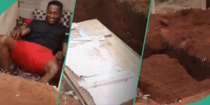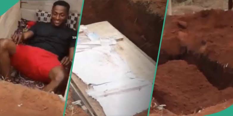 Nigerian man, Young C, has been successfully exhumed after spending 24 hours buried alive in a coffin. Young C began the challenge on Wednesday, May 8 and has completed it. At several intervals, Young C gave updates from inside the coffin. His challenge however led to TikTok permanently banning his account.