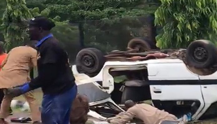 In a 23-second video obtained by our correspondent, it was observed that a white mini bus (Korope) involved in the accident was upside down and a female passenger was lying and bleeding on the floor. Some Good Samaritans were also making efforts to rescue the students entrapped in the vehicle.