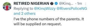 He added: “Is there any NGO or government organisations to take up this case, please. @RiversPoliceNG @PoliceNG @PoliceNG_CRU is there anything you can do?