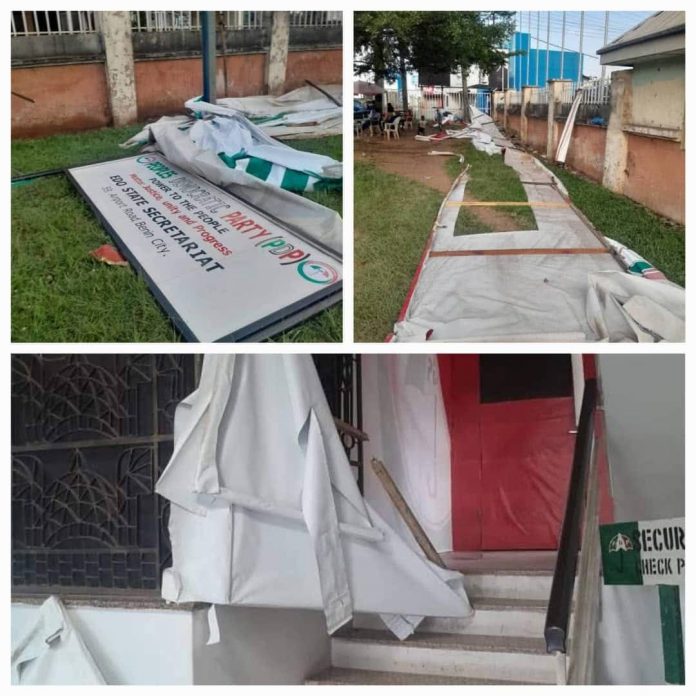 The attackers, alleged to be affiliated with the All Progressives Congress (APC), vandalized doors, windows, and office equipment at the PDP Secretariat. Several electronics, computers, and other valuable items were carted away during the invasion.