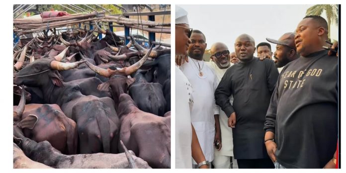 Ceberity influencer, Pascal Okechukuw, popularly known as Cubana Chiefpriest, has gifted his friend 47 cows for his late mother’s burial.