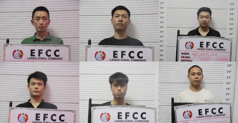 According to an EFCC statement released on X, the defendants – LI Dong, Deng Wei Qiang, Huang Bo, Xiong Zhen, Lai Rui Feng, Zhao Xiao Hui, Lui Hai Rong, Lui Gang, and Du Ji Feng – were formally charged in February 2025.