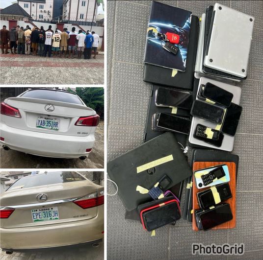 The statement added that the operatives recovered two cars, 15 laptops and 34 mobile phones from the suspects; adding, “The suspects will soon be charged to court.”