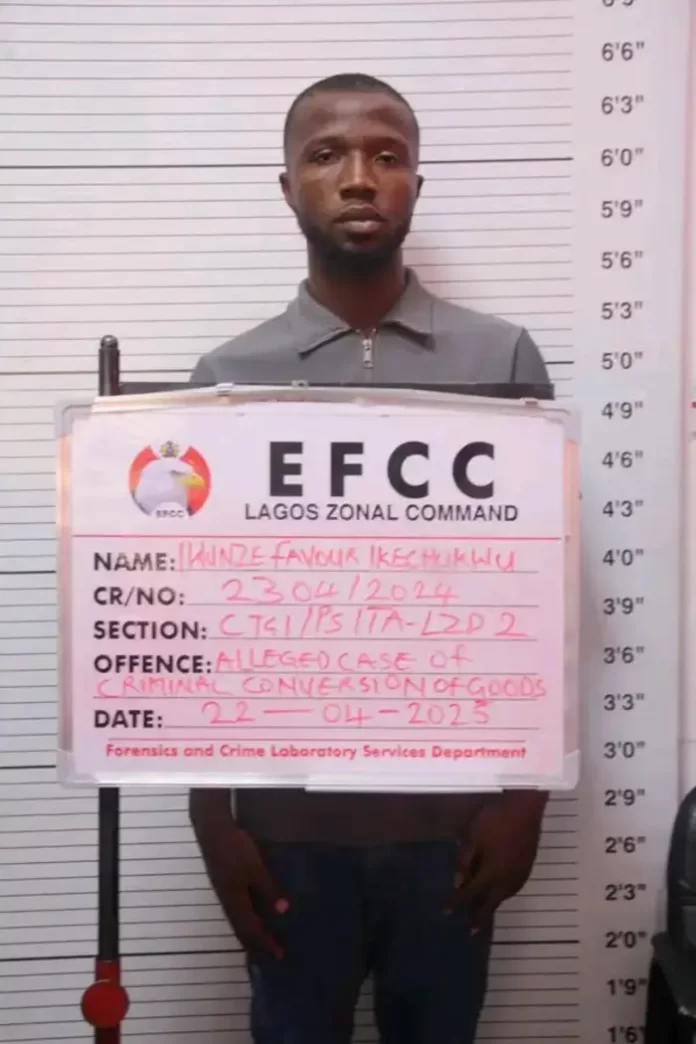 The Economic and Financial Crimes Commission, EFCC, Lagos Zonal Directorate 2, on Thursday, July 31, 2025, arraigned one Iwunze Ikechukwu Favour before Justice Mojisola Dada of the Lagos State High Court sitting in Ikeja on a one-count charge of theft involving the sum of N208,384,000.