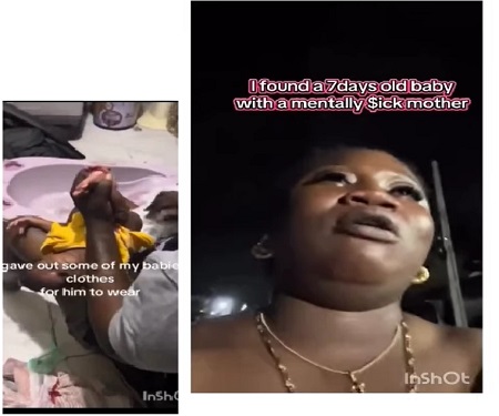 The lady shared a video online, revealing that the unstable woman and her 7 day-old child had been left starving on the streets.