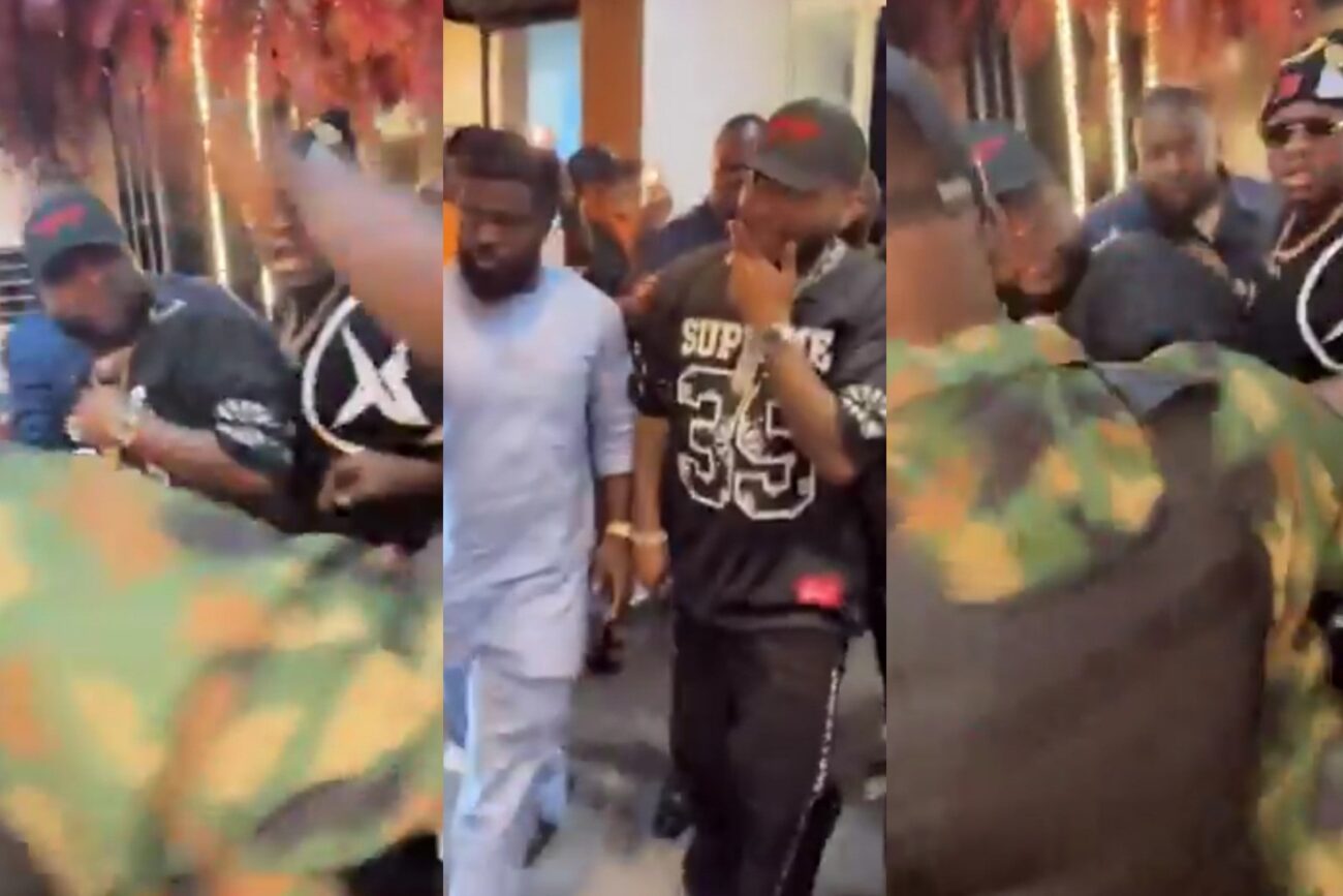 A video making the rounds online captured the moment Davido was hit on the head while leaving the club.