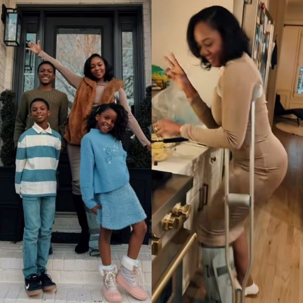 In the clip, Anita was seen on crutches as she made a meal for her kids and guests.