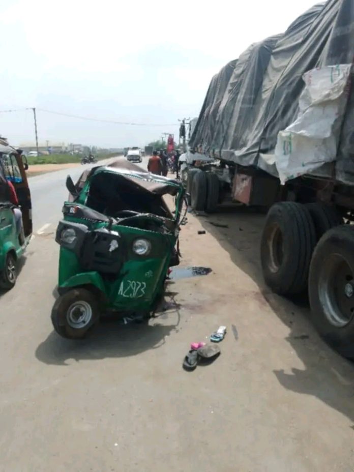 A transporter, who witnessed the accident, Mr. Igwe Nwoke, said that the tricycle which was loaded with passengers, crashed into the SUV while attempting to avoid the truck that was coming from opposite direction.